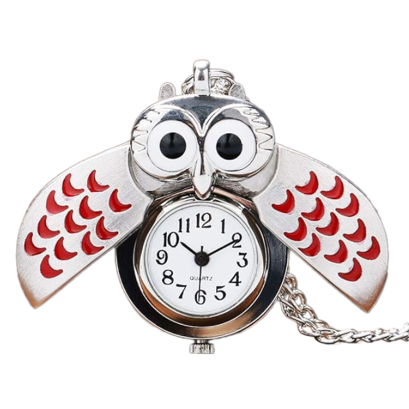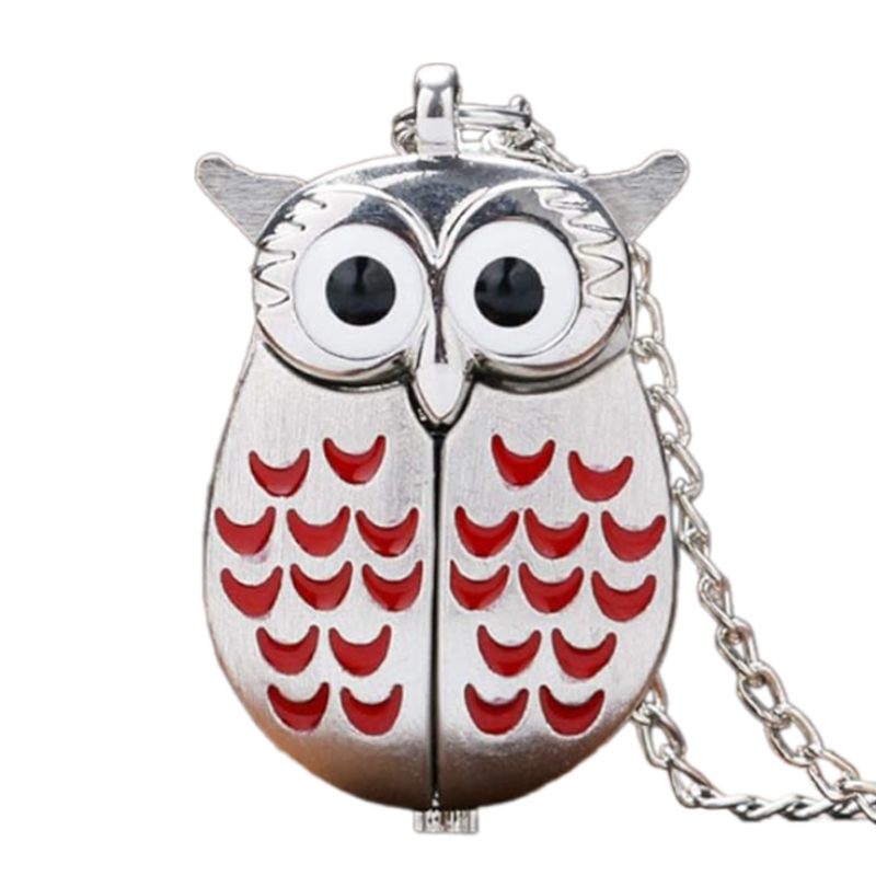 부엉이 은색 빨간색 목걸이 소형 고급 회중 시계_기념품 여행 쥬얼리