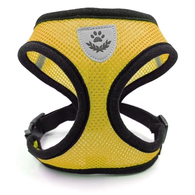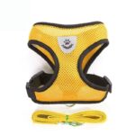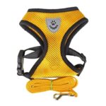 (Yellow) Dog Mesh Harness & Leash Set/Breathable, Lightweight, Comfortable, Safe for Daily Walks