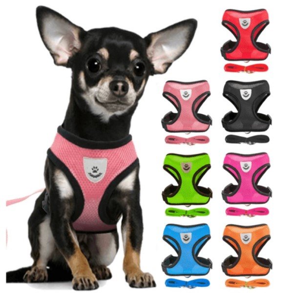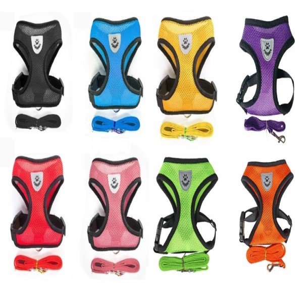 Give your pet a more comfortable and safer walking experience with this soft mesh harness and leash set.