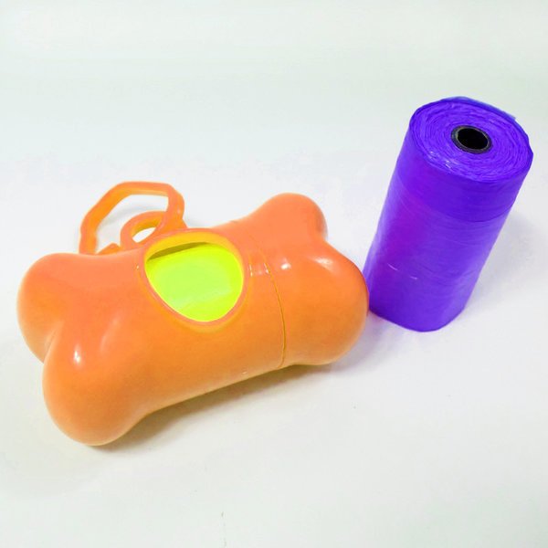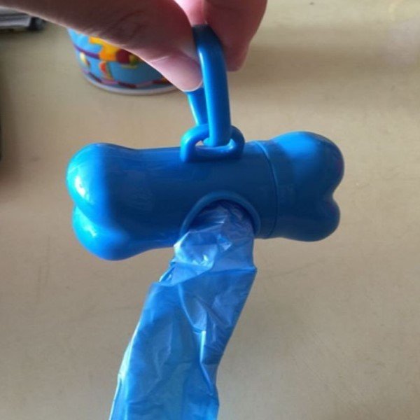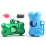 The bone-shaped case contains the poop bags inside, combining practicality with a fun and stylish design.